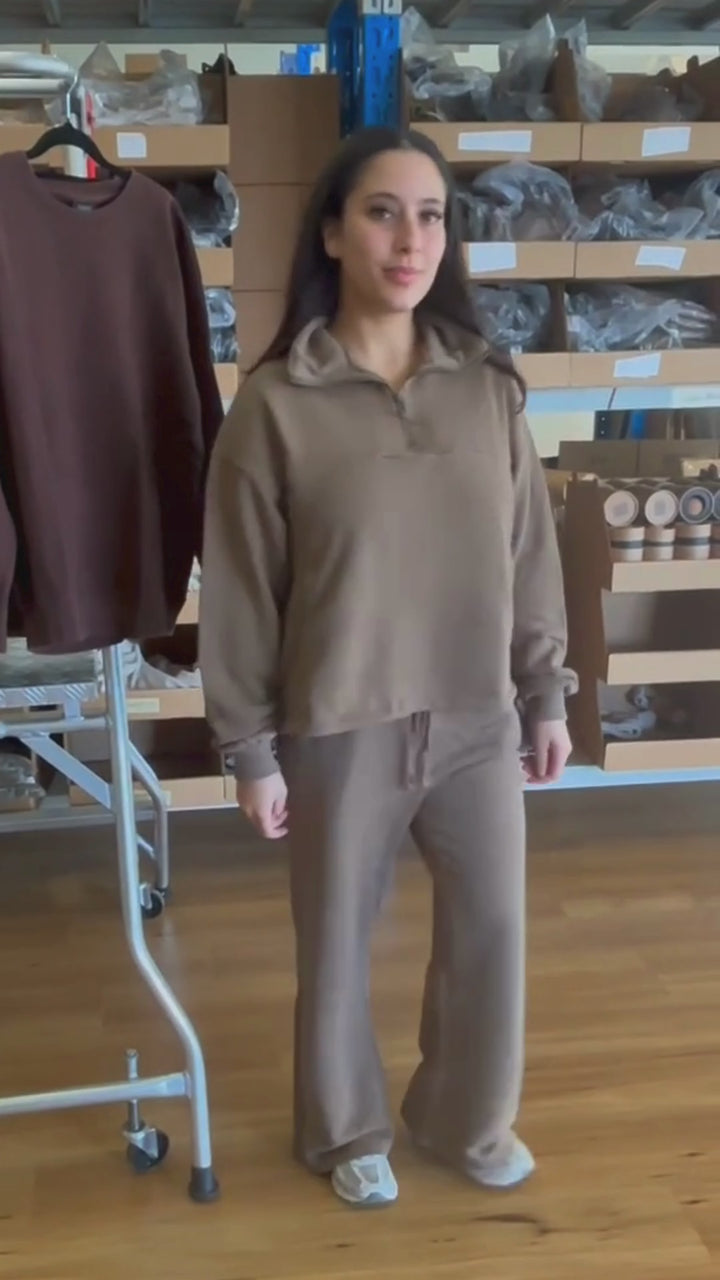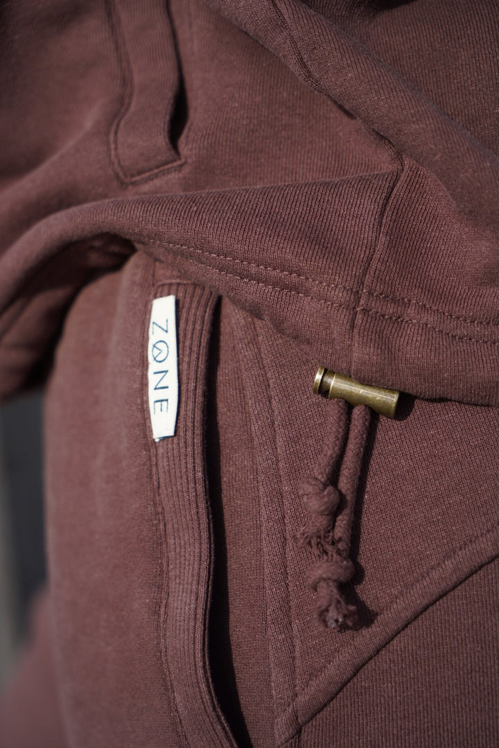 Elly wears Cacao in Size M (170cm). She wears size small in the matching Zip Sweater. Kathryn wears medium in Olive and Large in Shiitake. (175cm). Also pairs nicely with our Unisex Crew Sweater.