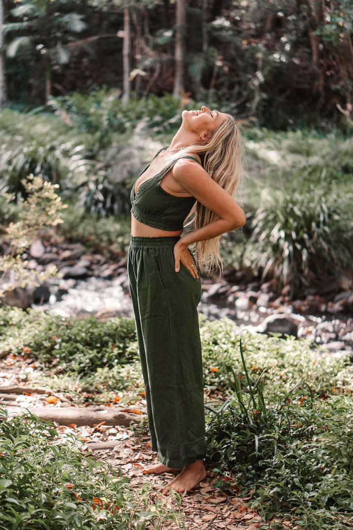 Our Anaya Wide Leg Hemp Pant brings effortless elegance and comfort together in one timeless design. Made from 100% hemp with delicate organic cotton lace details, these pants are naturally breathable, soft, and completely synthetic-free.